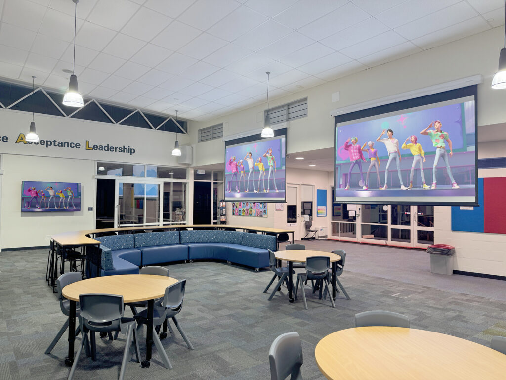 Working alongside the client, Vision One Technologies delivered a high-impact AV solution designed to transform the Charles La Trobe library open area into a versatile presentation and collaboration environment. The deployment focused on large-format visual delivery, clear and consistent audio reinforcement and intuitive control to support assemblies, presentations and shared learning experiences within the open space.